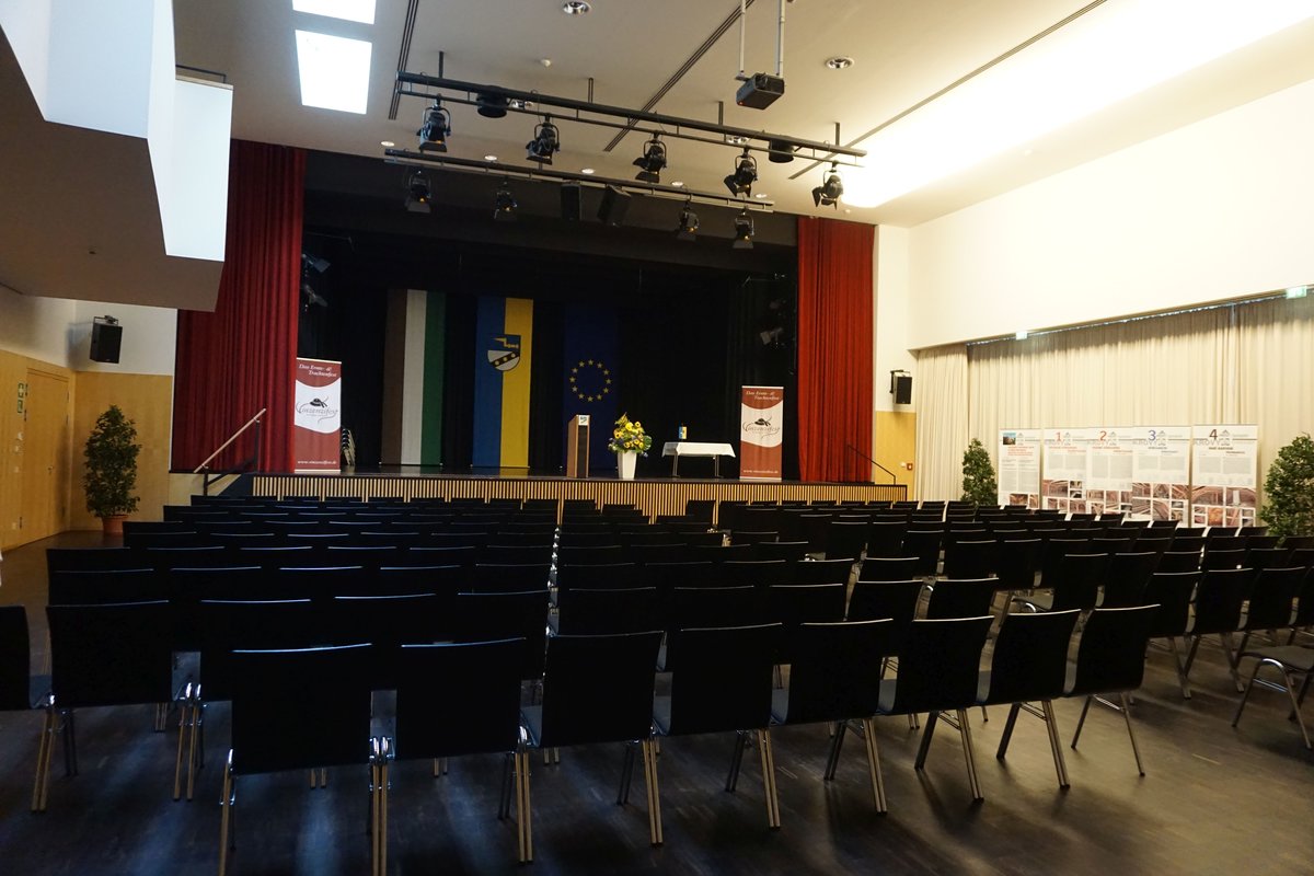 Der große Saal mit seiner Bühne ist ein klassischer Veranstaltungsraum und ideal für Konzerte, Theateraufführungen, Firmenevents oder Hochzeitsfeiern geeignet. In dem 320 m² großen Raum können max. 240 Personen bei einer Tischbestuhlung Platz finden.